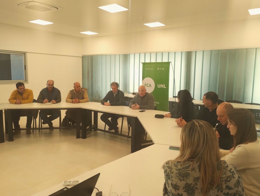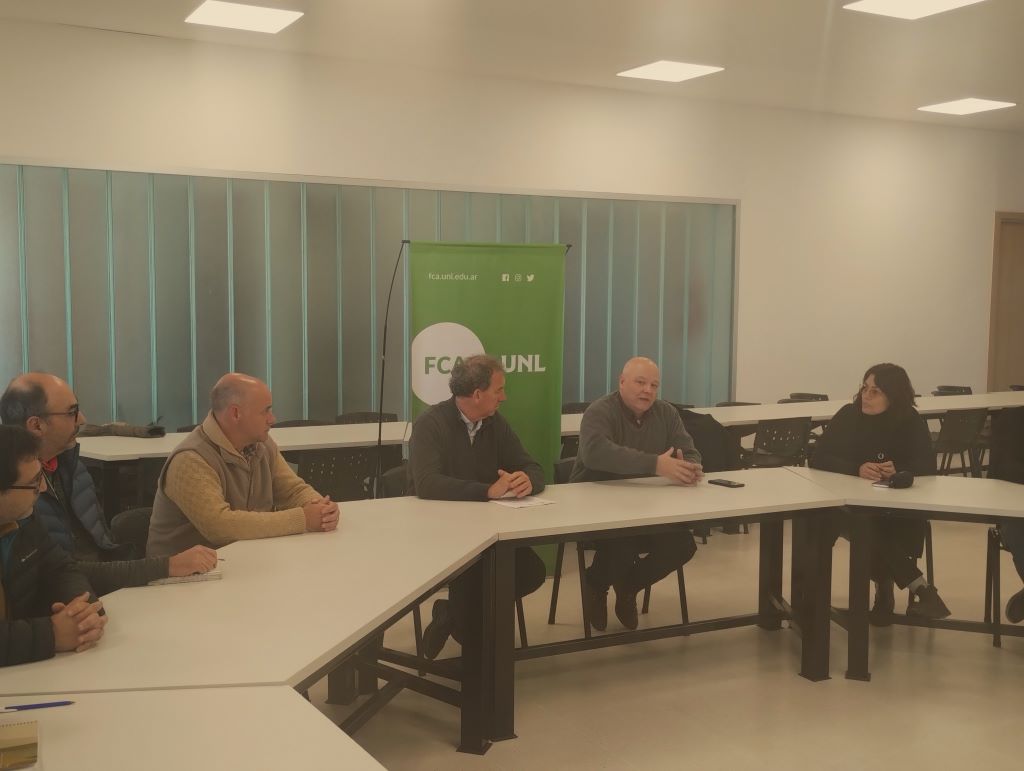 De la reunión participaron el Secretario General de la UNL, Adrián Bollati; la Coordinadora de Proyectos Institucionales de la UNL, Carolina Sanchis; el decano de la Facultad de Ciencias Agrarias, Oscar Osan; y el Secretario de Coordinación Institucional de la Facultad de Ciencias Agrarias, Gustavo Ribero.