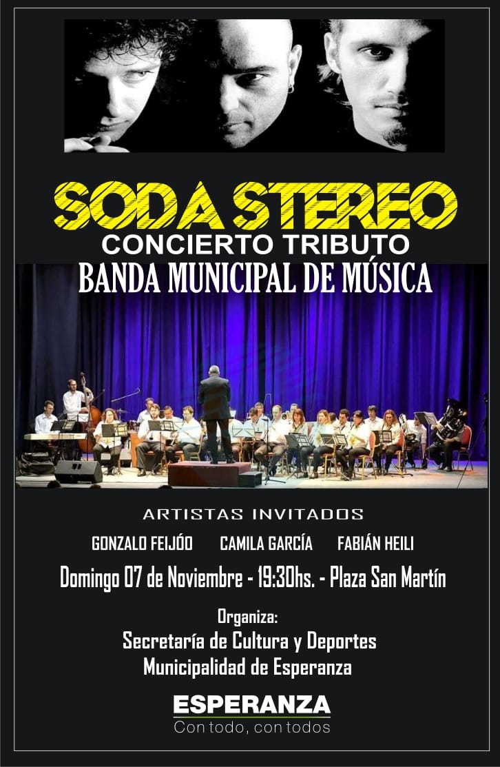 La Banda de Música Municipal brindará un concierto tributo al grupo Soda Stetero en nuestra ciudad.