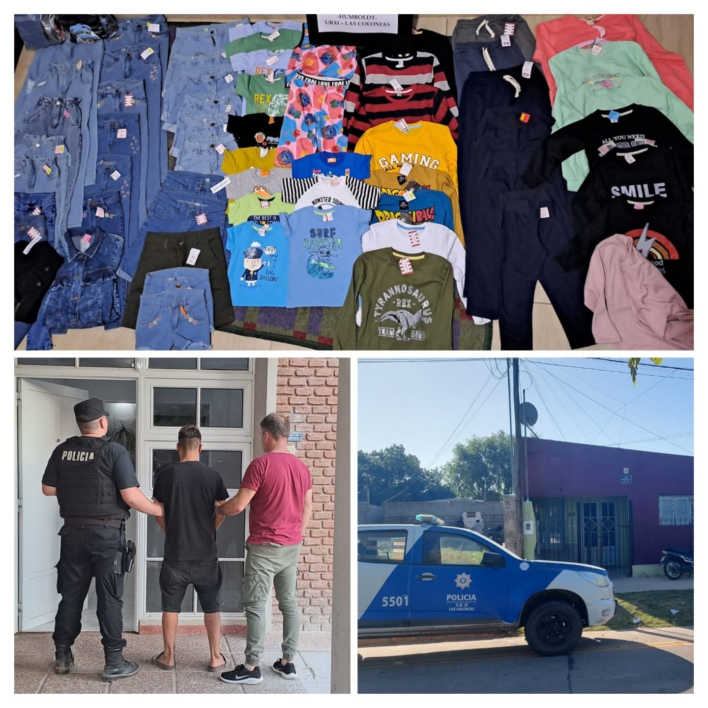 Con la información obtenida de las investigaciones realizadas y con el conocimiento del Fiscal de Las Colonias, se llevó a cabo una requisa domiciliaria, esta vez en una vivienda de calle Bolinger al 800 de la ciudad de Rafaela. Desde ese lugar se recuperaron una gran cantidad de prendas de vestir para niños, las cuales habrían sido sustraídas desde el local Garabatos de Humboldt y eran ofrecidas para la venta on line a través de redes sociales.