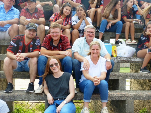 Era tristeza hasta los 30 minutos del segundo tiempo cuando en una ráfaga de tres minutos, estalló toda la alegría. Como un hincha más de su pueblo, Julio Muller y flía saltaron y cantaron en la fiuesta de la locura que fue esa tribuna con 600 hinchas amuchonados que no pararon de saltar.