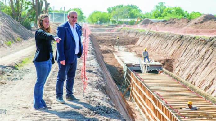 El intendente de Esperanza, Rodrigo Müller, acompañado por la secretaria de Obras e Infraestructura Pública, Micaela Nagel, recorrió este miércoles el avance de la Etapa I del Desagüe Troncal Hohenfels, que se lleva adelante mediante una inversión del gobierno provincial superior a los 3.000 millones de pesos.