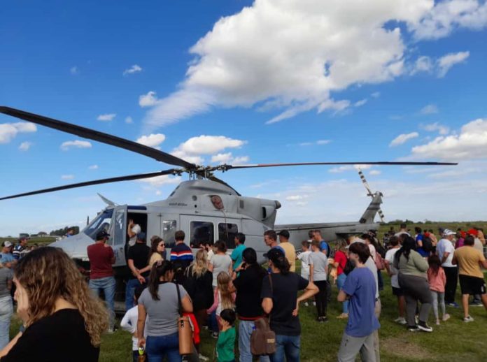 La presencia de la Fuerza Aérea Argentina le dio un marco imponente al evento y el pasaje de los aviones lockheed a-4ar fightinghawk (halcón luchador), cautivó al público que disfrutaba del inolvidable festival desarrollado.