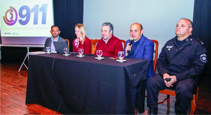 El intendente Rodrigo Müller, junto al ministro de Justicia y Seguridad de la Provincia, Pablo Cococcioni, y la secretaria de Gestión Institucional, Virginia Coudannes, presentaron este martes en Esperanza una nueva herramienta del 911 que ya está disponible para los vecinos.