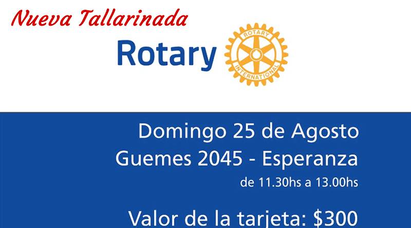 El próximo domingo 25 de Agosto se concretará una nueva Tallarinada Rotaria. El valor de la tarjeta es de $ 300 y puede ser retirada en Güemes 2045 de 11:30 a 13 horas.