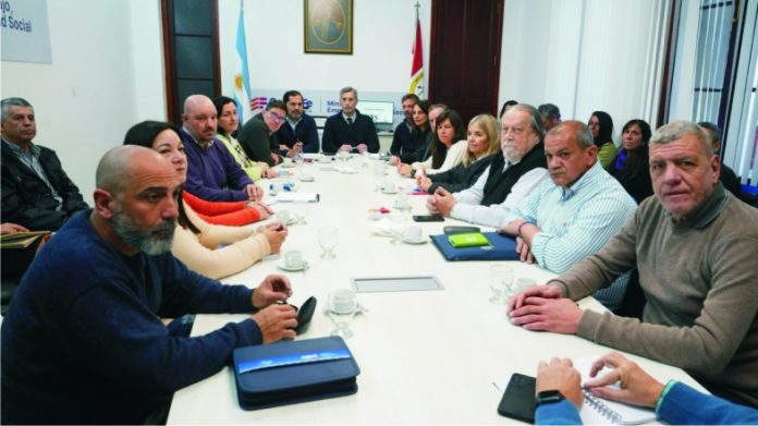 El encuentro fue encabezado por los ministros de Educación, José Goity; de Economía Pablo Olivares; y de Trabajo, Empleo y Seguridad Social, Roald Báscolo; y los representantes de Amsafe, Rodrigo Alonso; Sadop, Pedro Bayugar; Amet, Omar Olmedo; y UDA, Daniel Domínguez.