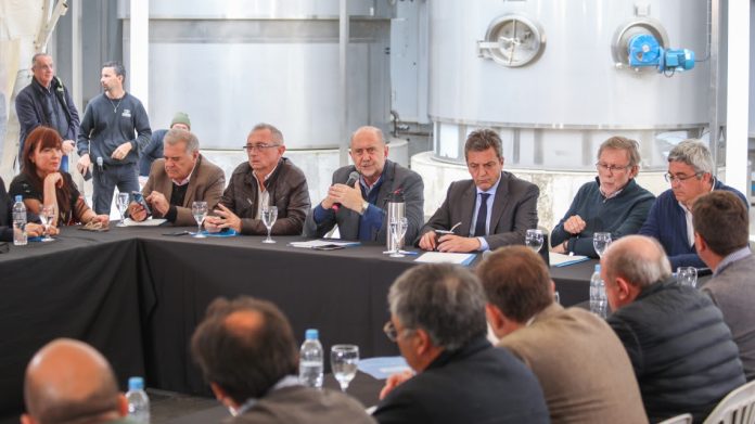 La reunión se desarrolló en la planta de la firma Tremblay, en la comuna de Pilar, donde el ministro de Economía anunció que por los próximos 90 días quedan suspendidas las retenciones a las exportaciones de leche.