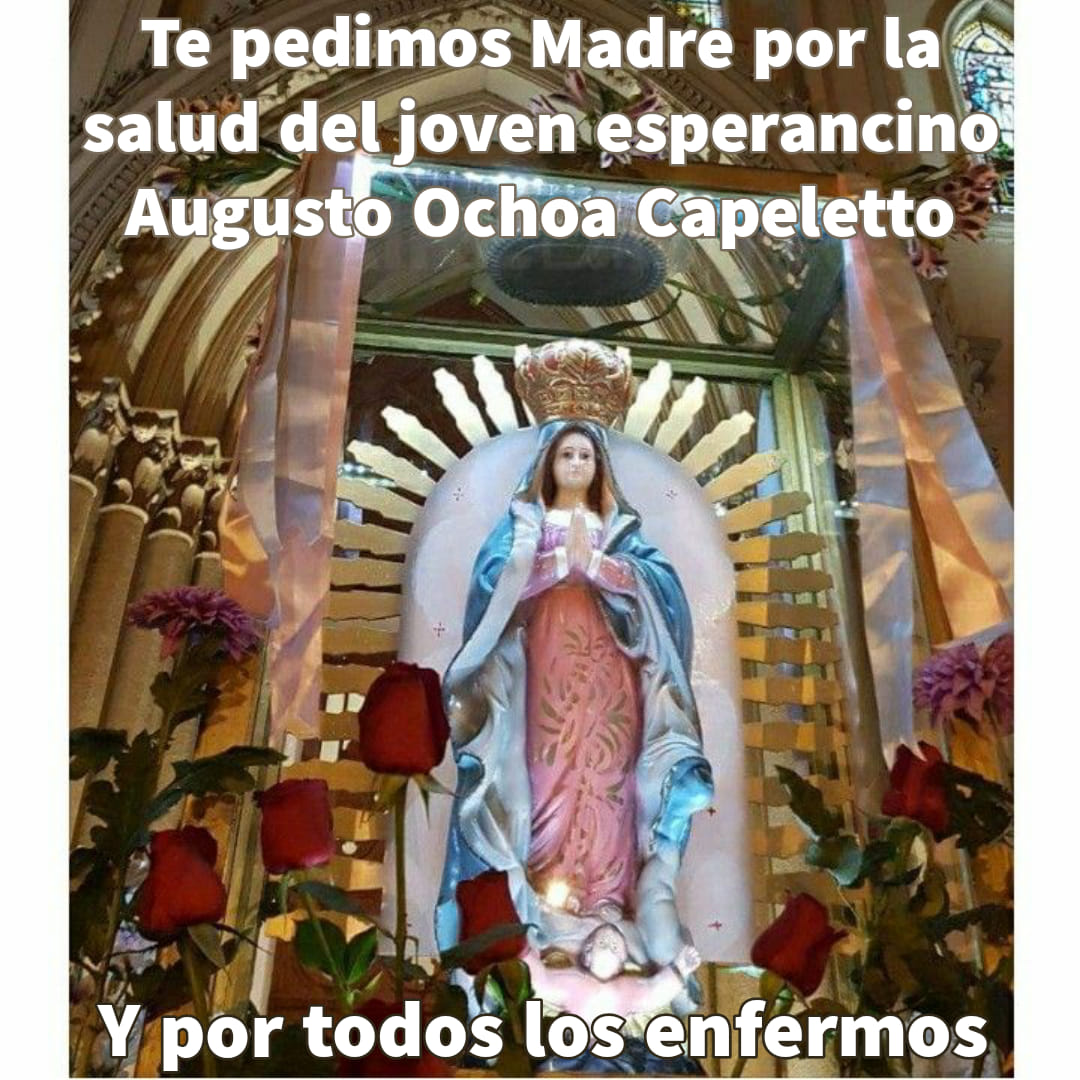 “Te pedimos Madre del Cielo, por la salud del joven esperancino Augusto Ochoa Capeletto y por todos los enfermos” dice un ruego que circula en las redes sociales. Se trata del hijo de dos queridas familias esperancinas, quien se encuentra internado en estado delicado en materia de salud.