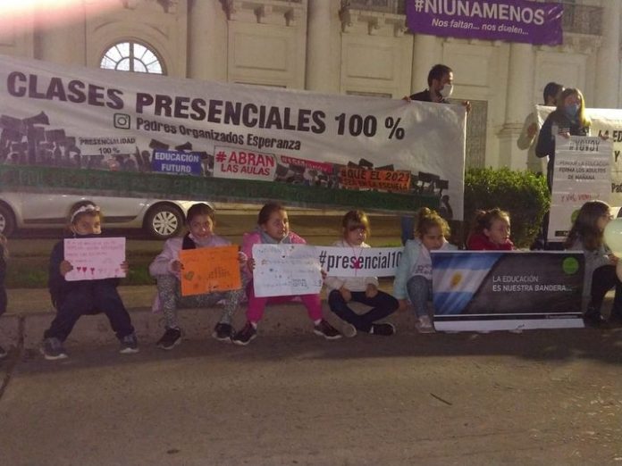 “Padres Organizados” de Esperanza que lidera el vecino Joaquín Mutti, entre otros padres de alumnos, convocó a la sociedad esperancina a expresarse en Plaza San Martín a favor de las clases presenciales en las escuelas de nuestra ciudad.